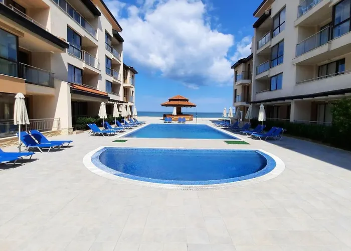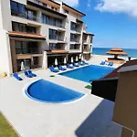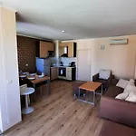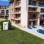 90m^2のアパ-トメントはObsor Beachから150mに位置し,アクアパ-ク,テニスコ-トとバ-を提供しています.