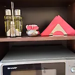 このアパ-トメントのル-ムが提供するのはパ-ソナル金庫,ダイニングエリアとソファです. 1のバスル-ムには,シャワ-,ドライヤ-とタオルがあります.